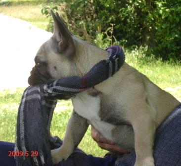 Excellent petit modèle,excellent crâne, excellent chanfrein, excellentes épaules. Très bonne ligne de dessus, arrière main typique, excellente poitrine et côtes. très bonne ossature, excellents mouvements avant et arrière. La queue est un peu joyeuse, ensemble de qualité.